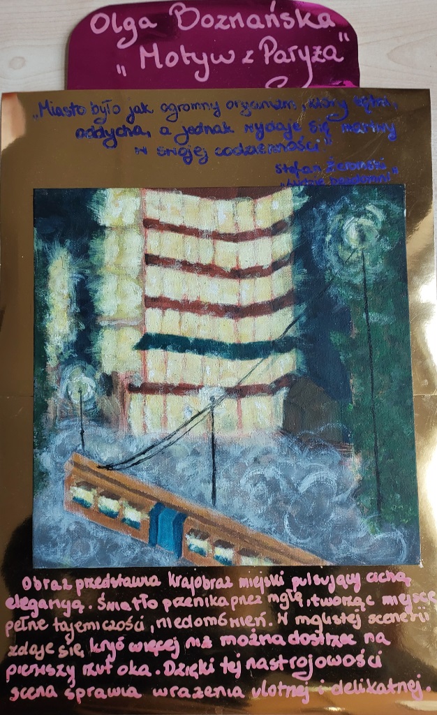 Z radością ogłaszamy wyniki konkurs, w którym uczniowie tworzyli prace plastyczne inspirowane twórczością Olgi Boznańskiej, wzbogacając swoje dzieła cytatami z wybranych utworów literackich.