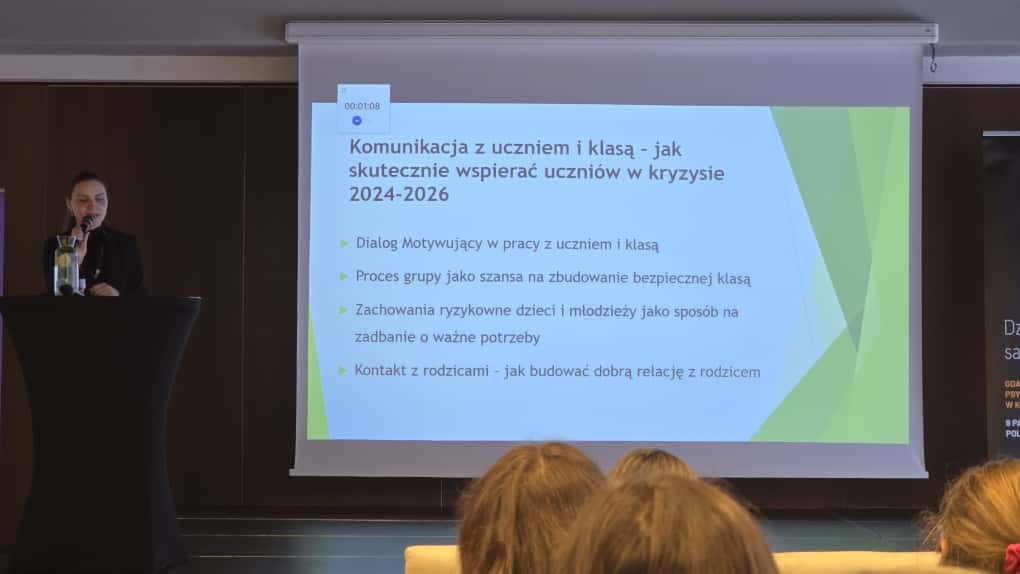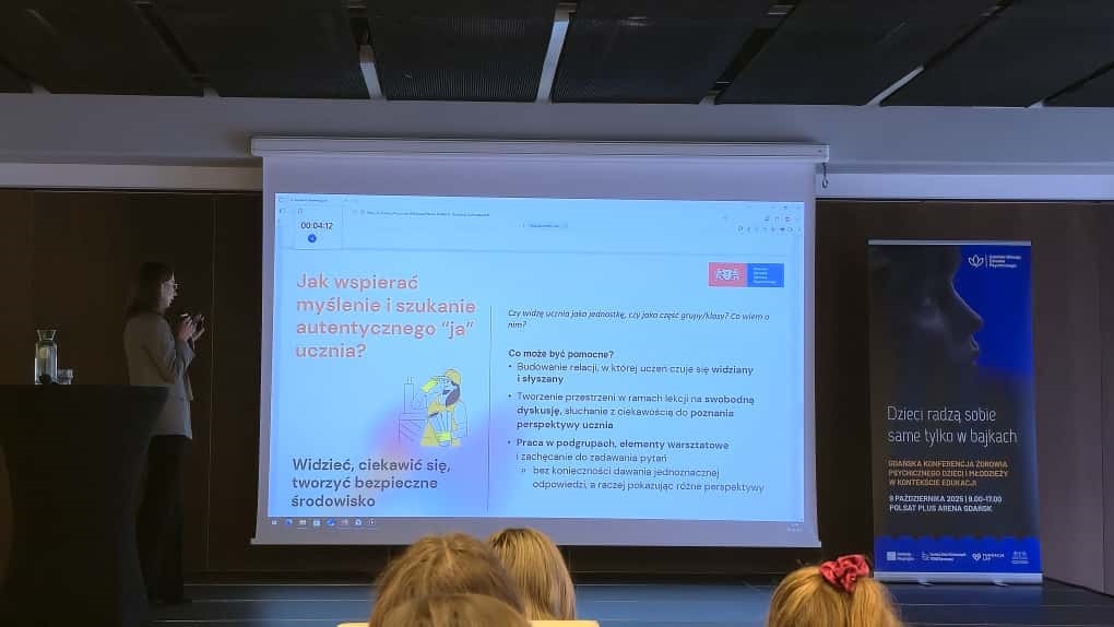 W czwartek 09.10.25 r. nasza nauczycielka pani Joanna Nikulin-Stawinska uczestniczyła w całodniowej konferencji dla nauczycieli "Gdańska Konferencja Zdrowia Psychicznego Dzieci i Młodzieży w Kontekście Edukacji". A w piątek 10 października uczniowie byli częścią PRZYSTANKU MŁODZIEŻ jako aktywni uczestnicy warsztatów, ale również jako wolontariusze Fundacji LPP, organizatora imprezy. Podczas piątkowego PRZYSTANKU naprawdę działo się dużo dobrego: warsztaty i rozmowy poświęcone emocjom i zdrowiu nastolatków, warsztaty sportowe i muzyczne, w tym m.in. warsztaty rapowania i beatboxowania prowadzone przez Stowarzyszenie Witaj w domu. Wśród prowadzących zajęcia dla uczniów byla pani Nikulin, która z zaangażowaniem prowadziła spotkanie dla 400 osobowej grupy młodzieży.