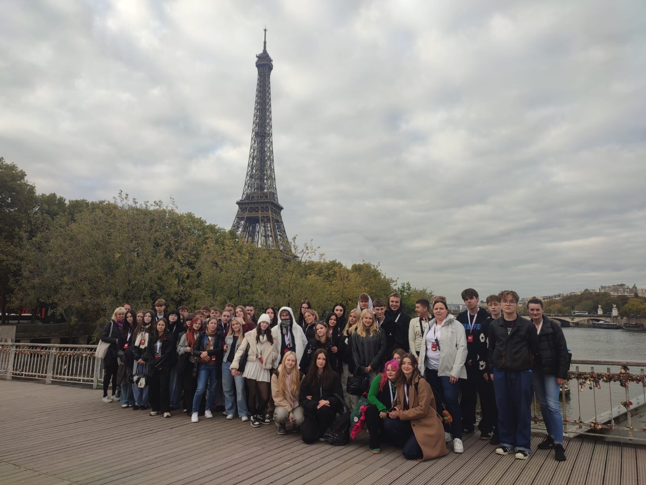 Od 06.10.2025 roku do 10.10.2025 roku młodzież z klas 3a, 3b, 3k, 3L, 2n, 3j z opiekunami uczestniczyła w wyjeździe do Paryża. W trakcie pobytu w stolicy Francji uczniowie wzbogacili swoją wiedzę na temat sztuki, historii i współczesnego życia Francuzów. Podczas wyjazdu uczniowie odwiedzili najważniejsze zabytki i miejsca, które do tej pory znali głównie z podręczników – Wieżę Eiffla, ogrody Tulleries, plac Concorde, Muzeum Luwr, Wyspę La Cite z Katedrą Notre-Dame, gdzie młodzież poznała dzieje miasta, historię kościoła i sztuki gotyckiej, Dzielnicę Łacińską Sorbonę, Panteon, Wzgórze Montmartre z bazyliką Sacré-Coeur, place Pigalle, du Tertre- ulubione miejsce artystycznej bohemy, Łuk Triumfalny, Pola Elizejskie– a także uczestniczyli w rejsie po Sekwanie. Każde z tych miejsc stało się żywą lekcją historii, sztuki, a także języka francuskiego, którego uczniowie mieli okazję spróbować w praktyce, komunikując się i słuchając mieszkańców Paryża.